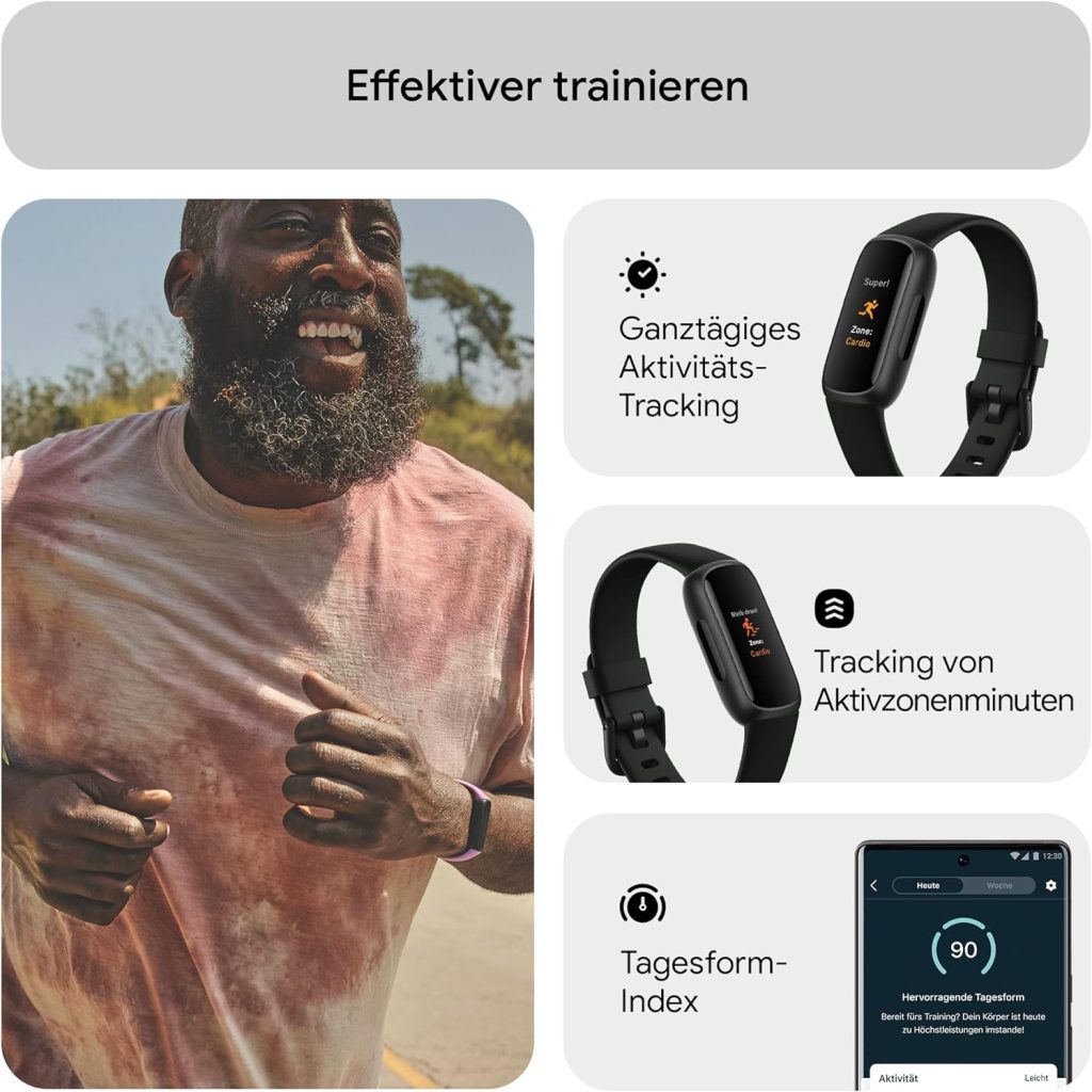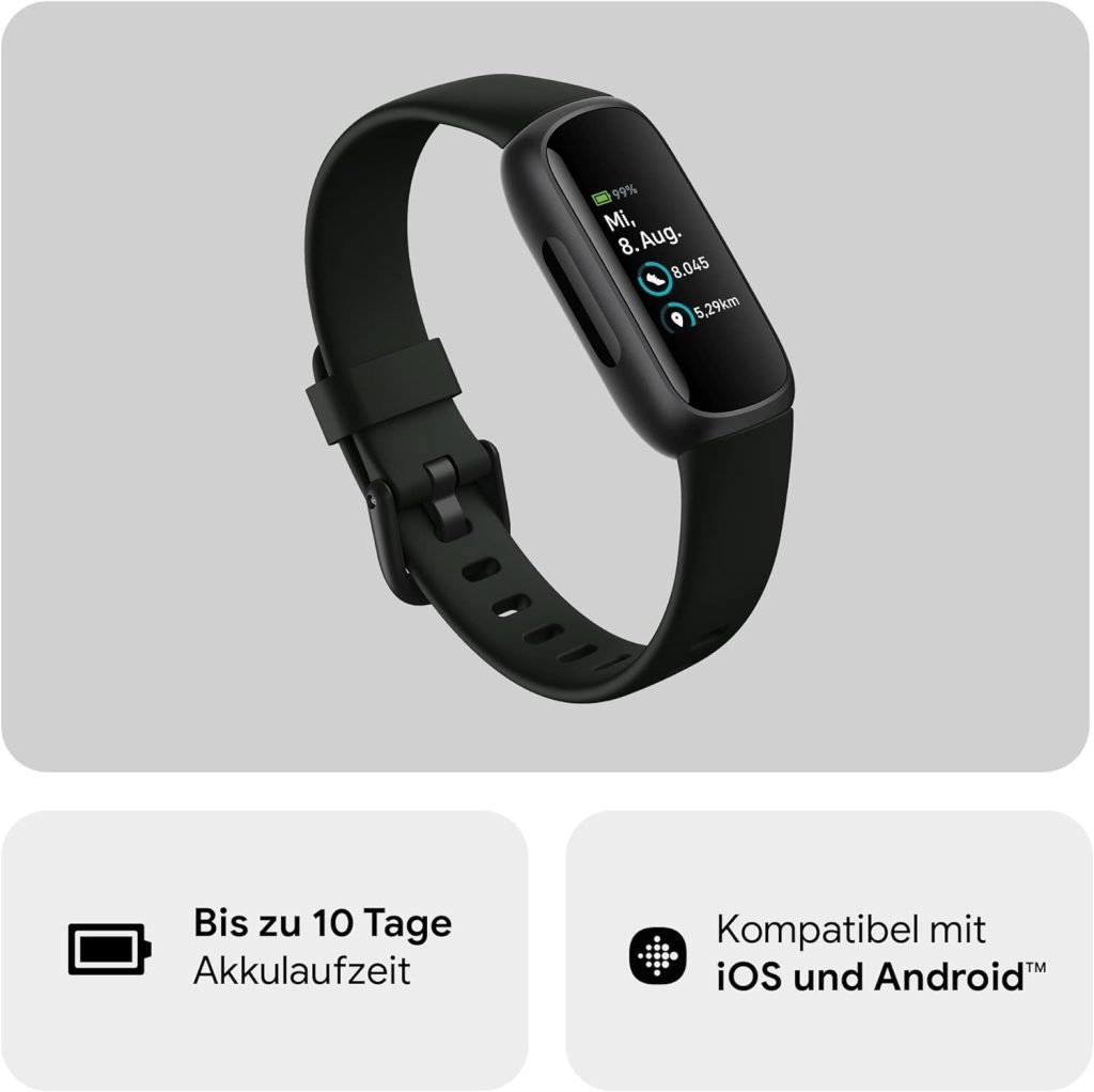 Der Fitbit Fitness-Tracker ist nicht nur funktional, sondern auch stilvoll. Mit verschiedenen Farboptionen und austauschbaren Bändern können Sie Ihren Tracker an Ihren persönlichen Stil anpassen. Das leichte und ergonomische Design gewährleistet einen angenehmen Tragekomfort, den Sie den ganzen Tag über genießen werden.